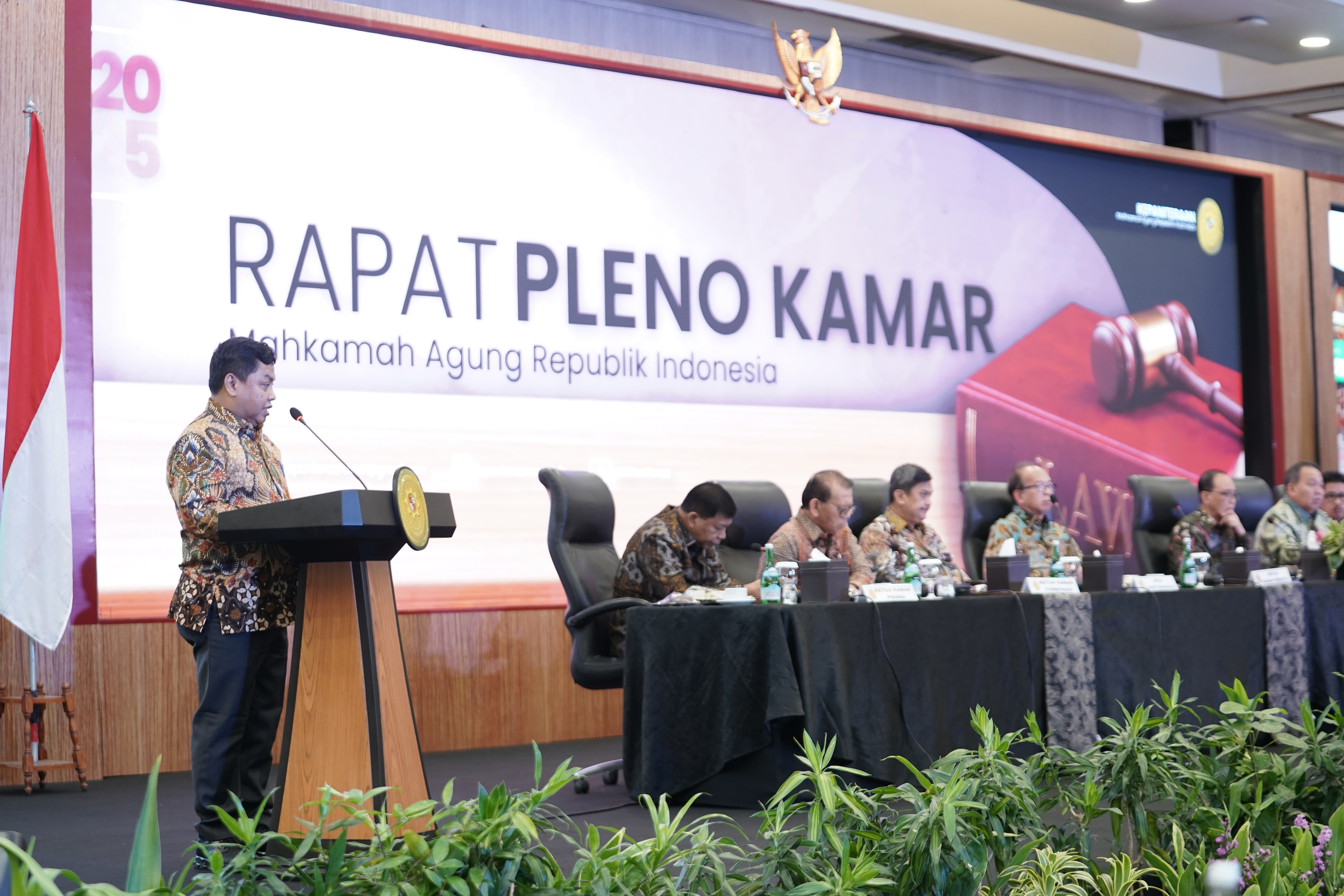 JAKARTA | (9/11/2025) Mahkamah Agung kembali menyelenggarakan Rapat Pleno Kamar Tahunan. Berbeda dengan Rapat Pleno pada tahun-tahun sebelumnya yang sembilan kali secara berturut-turut diselenggarakan di Hotel InterContinental Bandung, Rapat Pleno tahun ini dilaksanakan di Hotel Mercure Convention Center, Ancol, Jakarta. Rapat Pleno yang keempat belas ini dilaksanakan dari tanggal 9 s.d. 11 November 2025, dengan diikuti oleh seluruh Hakim Agung, Hakim Ad Hoc, Panitera, Para Pejabat Eselon I, Panitera Muda Perkara, Para Pejabat Eselon II terkait, Panitera Muda Kamar, serta perwakilan Hakim Yustisial/Panitera Pengganti.